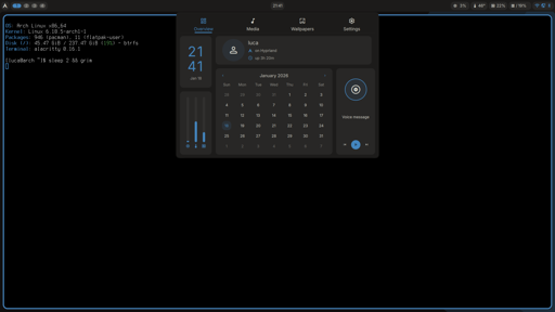 FediLUG Italia - Inaspettatamente ho passato giornate a provare e configurare Noctalia Shell e Dank Linux su Hyprland (simili ma diversi).